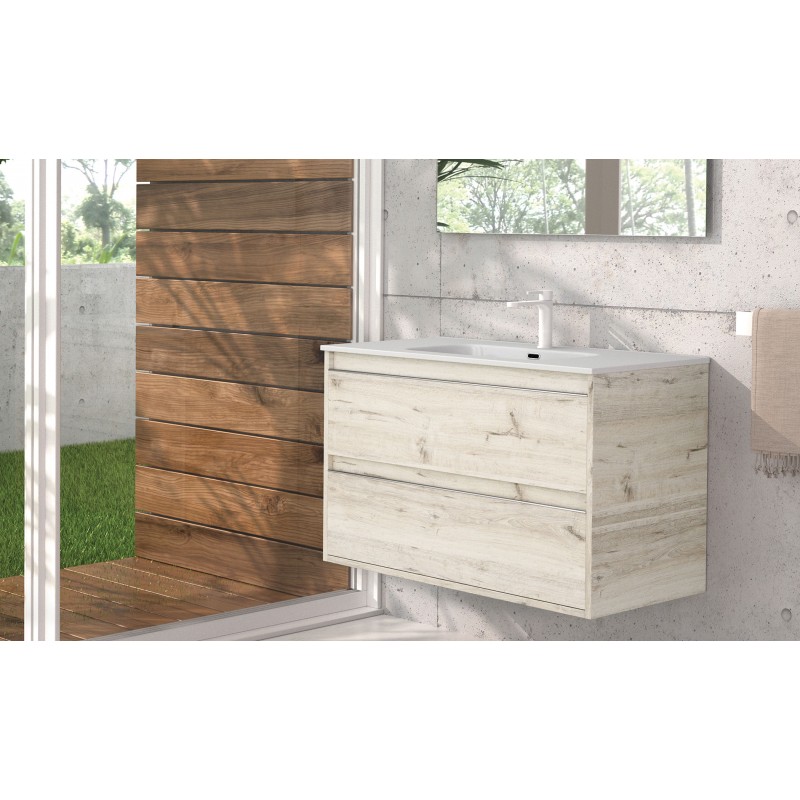 Bathroom hung furniture Nasu with two drawers and heated backlit led mirror, 60cm