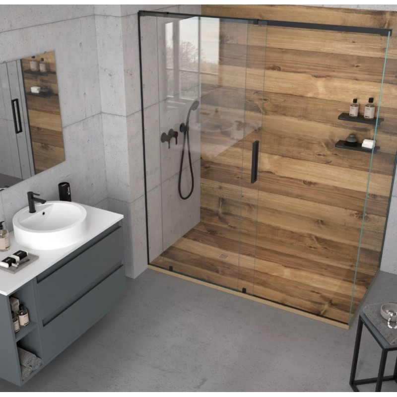 Elegance and sophistication in equal parts with our STONE PLUS 3D ROBLE AHUMADO 80x200cm resin shower tray with lightened mineral fillers.