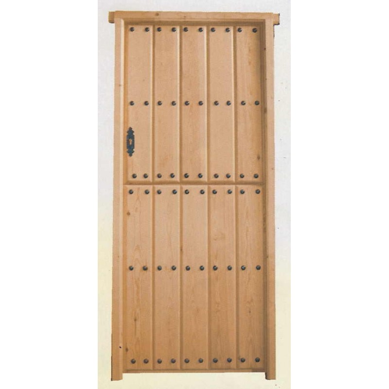 Exterior wooden blind door with nail. Partitioned door leaves. Rustic Series.
