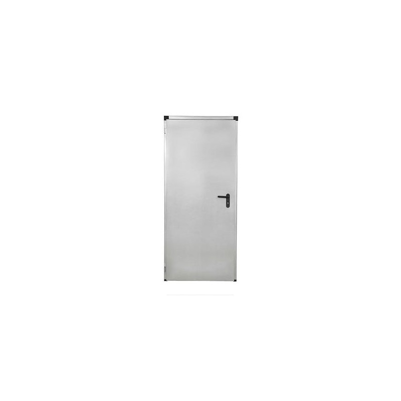 Door made of two galvanized sheets filled with honeycomb forming a totally compact body, with thermal and acoustic insulation; hermetically sealed and silent operation. Profiled frame to accommodate 4 cm partition. 200x90cm leaf. Direct frame to work. Handles included.