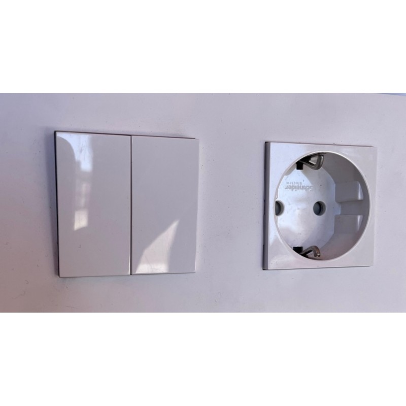Narrow double switch, quick-connect wiring. Polar white finish from Schneider's New Unica series. The New Unica series consists of a frame + mechanism + frame. Schneider's New Unica series offers frames for universal square and rectangular boxes, as well as double, triple, or quadruple frames in various finishes to complete your installation.
