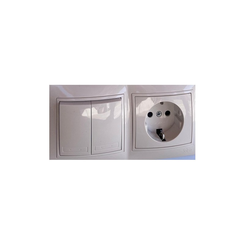 Double switch/10A 250V switch. 83x81. White. 10A 250V switch mechanisms. 16A 250V sockets. Made of polycarbonate. High-breaking silver contacts. Screw-type terminals. 1mm thick, zinc-plated, interlocking chassis. All conductive materials are made of Cusn94.