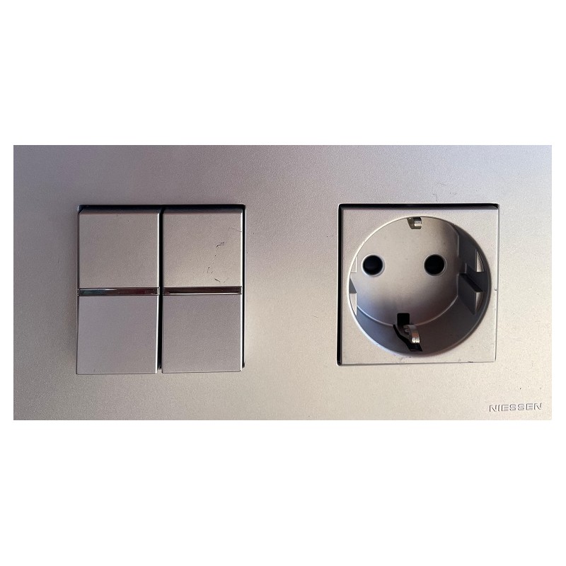 Zenit series wide switch + socket, front-mounted, robust, and compact, high-quality mechanism. Designed to hold the keys firmly and prevent balance. Only 21 mm deep, leaving more room for connections, providing a comfortable installation and a secure connection. Made of high-quality, recyclable plastic.