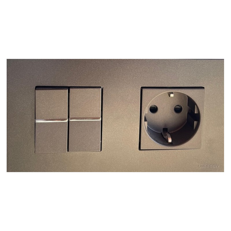Zenit series wide switch + socket, front-mounted, robust, and compact, high-quality mechanism. Designed to hold the keys firmly and prevent balance. Only 21 mm deep, leaving more room for connections, providing a comfortable installation and a secure connection. Made of high-quality, recyclable plastic.