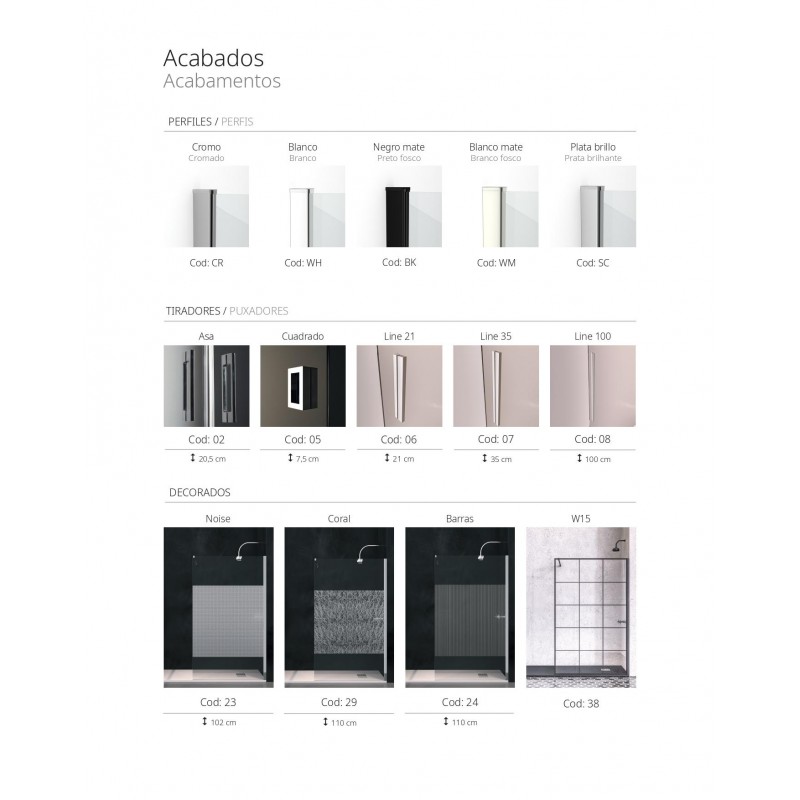 IMPORTANT WHEN PLACING THE ORDER, INDICATE THE FINISHING OF THE PROFILE, GLASS, HANDLE AND POSITIONS OF THE FIXTURE IN THE MESSAGES SECTION.