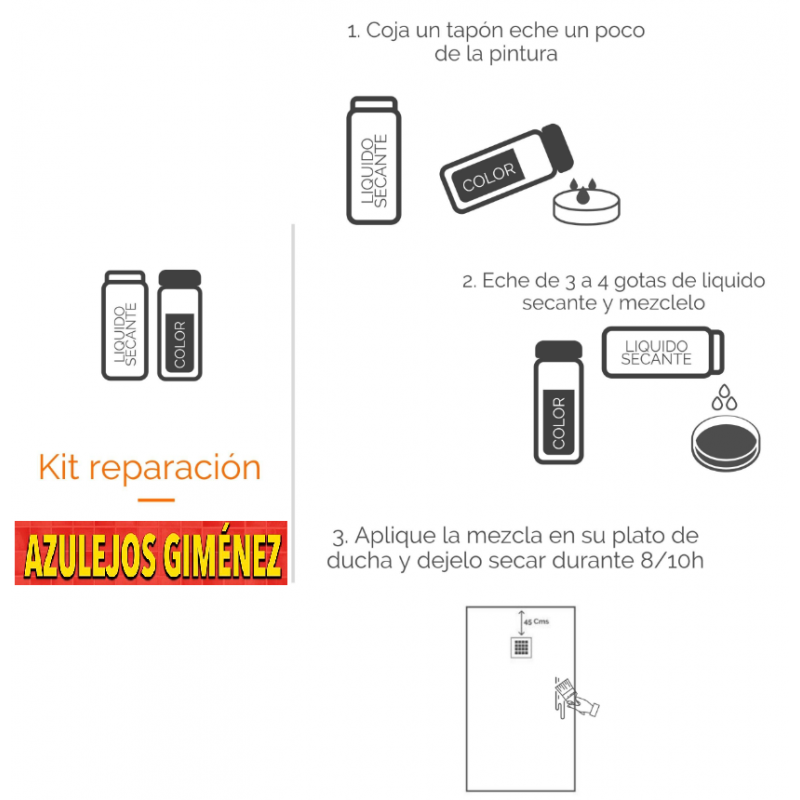 It is possible to repair shower trays if for some reason their surface has deteriorated due to improper use. In these cases, a Repair Kit can be requested, which must be required specifying the color and texture of the product to be repaired.